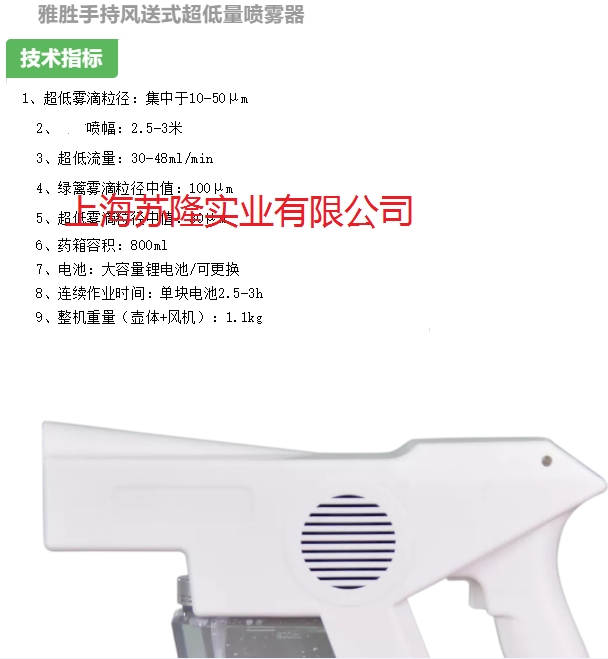 雅胜手持式喷雾器 风送式超低量消毒机 锂电雾化机-上海苏隆实业有限公司发布日期:2021-12-31